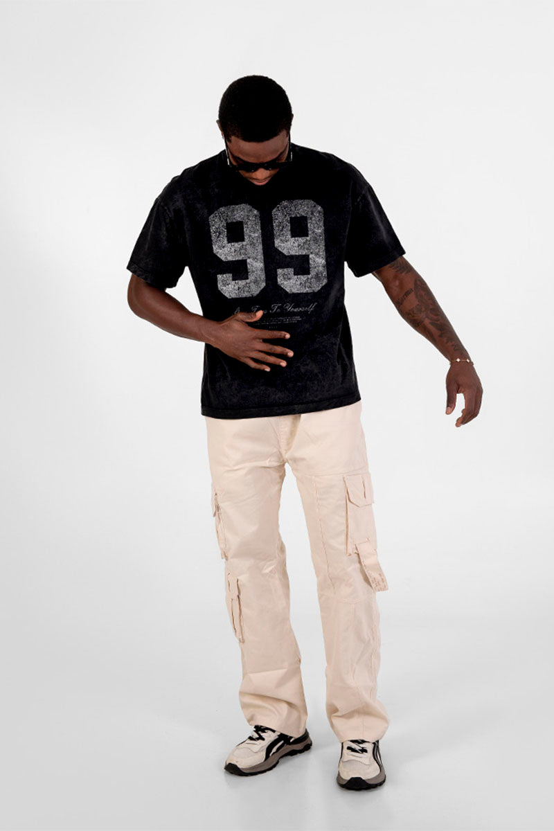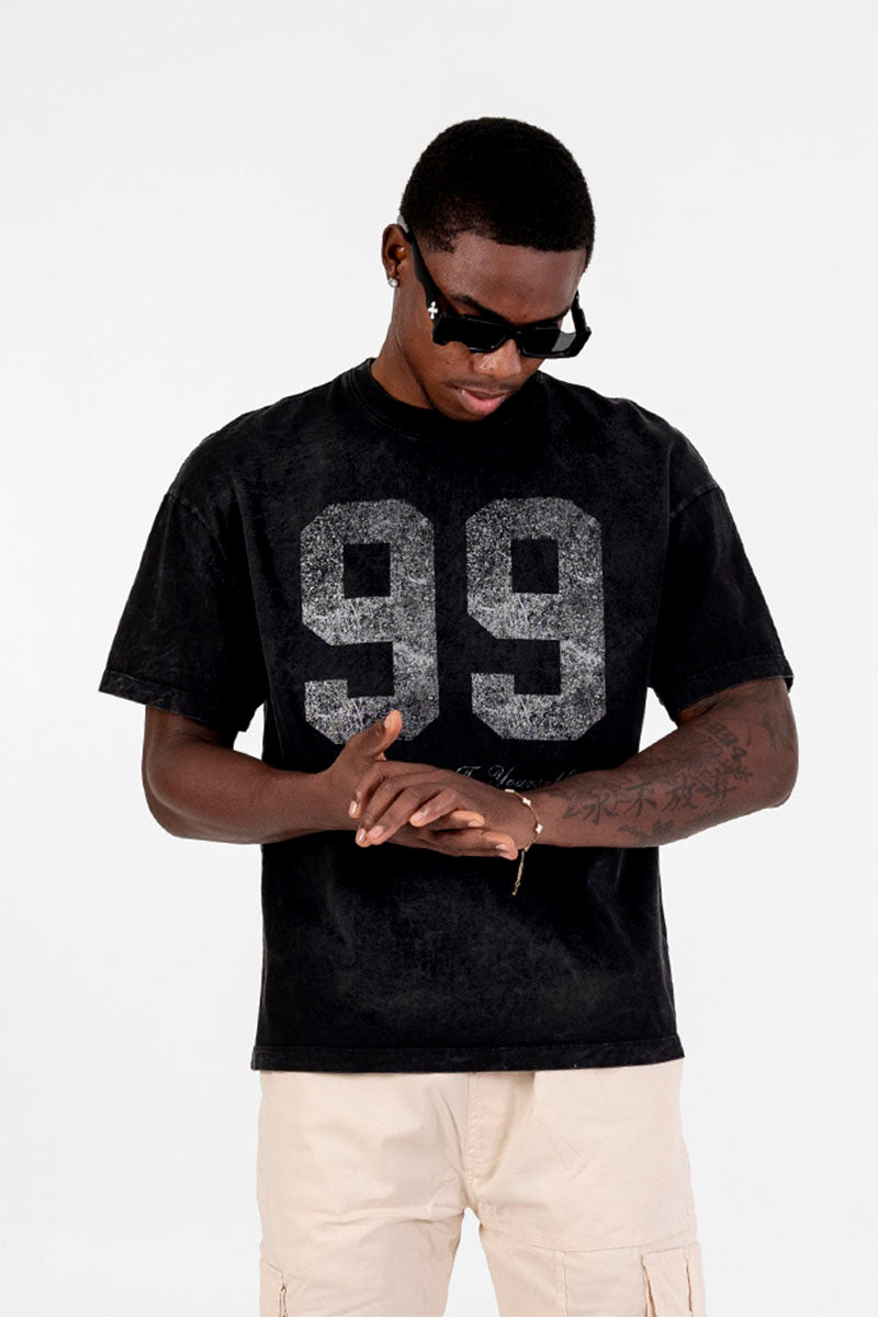 Esta camiseta acid wash 99 está confeccionada en algodón 100% de alta calidad, sometida a un proceso especial de lavado que le confiere un acabado único y desgastado. Su estampado resalta sobre la textura del tejido, ofreciendo un estilo auténtico y duradero, ideal para quienes buscan una prenda con carácter y comodidad superior.