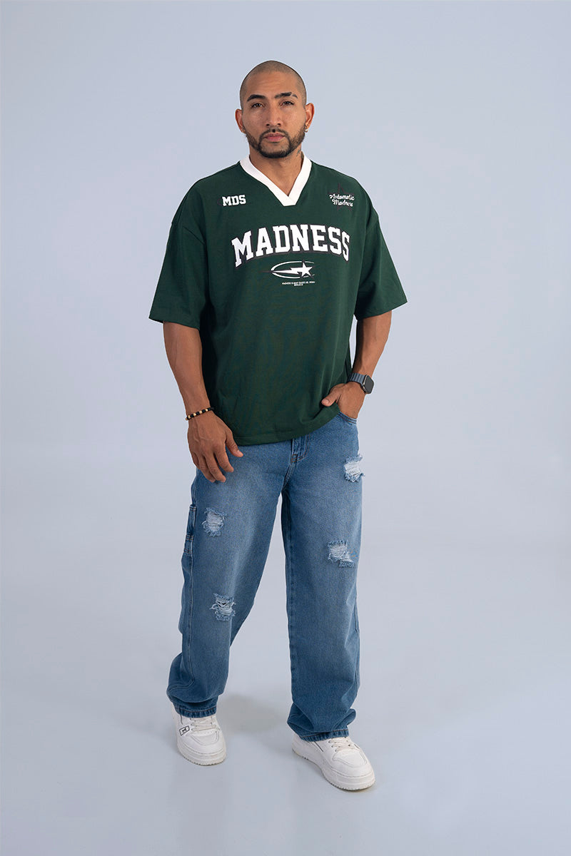 Camiseta boxy fit con inspiración beisbolera que combina comodidad y estilo en una propuesta moderna. Su cuello en V y corte relajado crean una silueta favorecedora, mientras que el estampado frontal añade carácter sin resultar excesivo. Prenda versátil que funciona tanto en looks casuales como en propuestas más deliberadas. Confeccionada para quienes aprecian los detalles que transforman una camiseta en una pieza con presencia y personalidad definida.