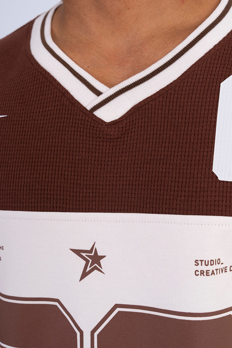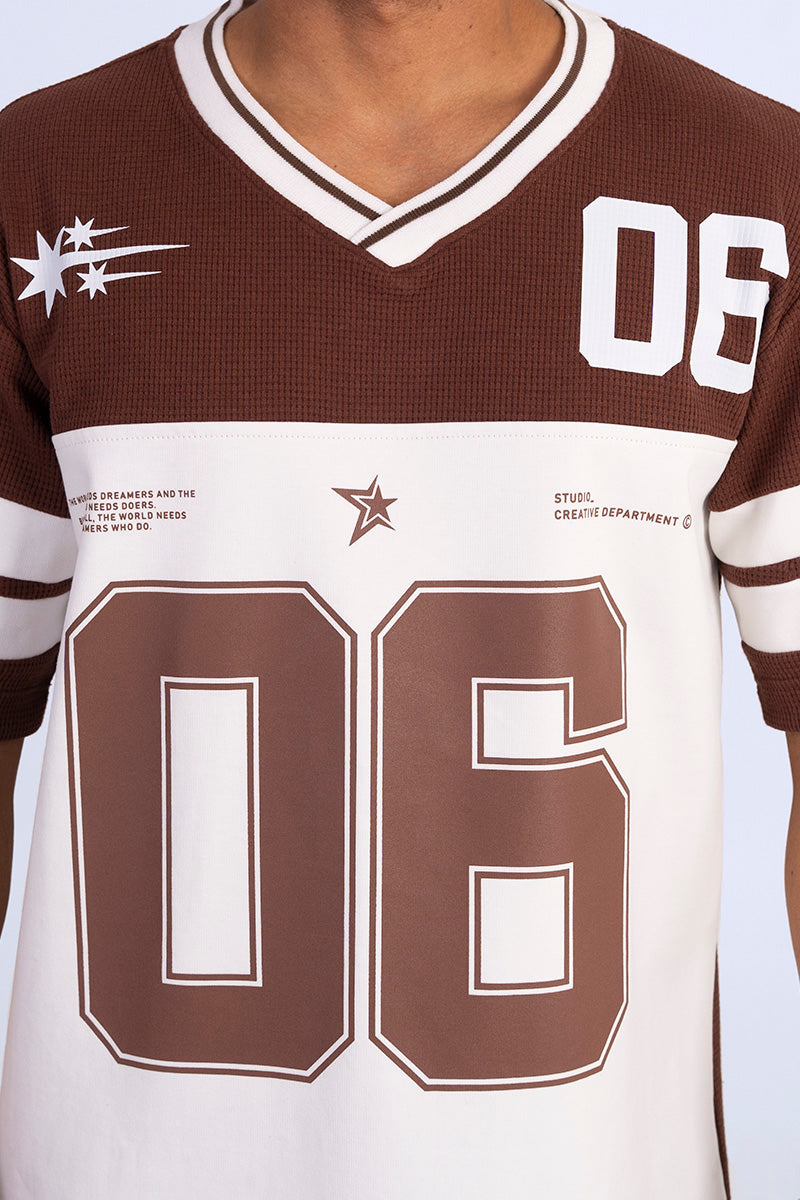 La camiseta corte textura six ofrece una silueta amplia y relajada, ideal para quienes buscan renovar su estilo con un toque contemporáneo. Su cuello en V y la mezcla de telas texturizadas aportan un look diferenciado y cómodo, perfecto para combinar en ocasiones casuales o urbanas. Su diseño estampado añade originalidad sin sacrificar versatilidad.