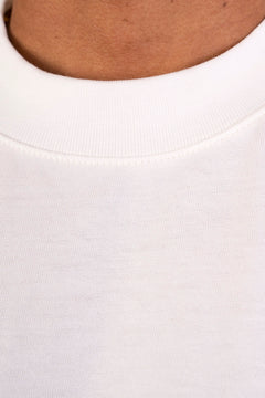 Disfruta de la comodidad y estilo con esta camiseta oversize blanco hueso, confeccionada en 100% algodón de 250 gramos para una sensación suave y duradera. Su cuello redondo clásico y corte amplio ofrecen un look relajado y moderno, ideal para cualquier ocasión.