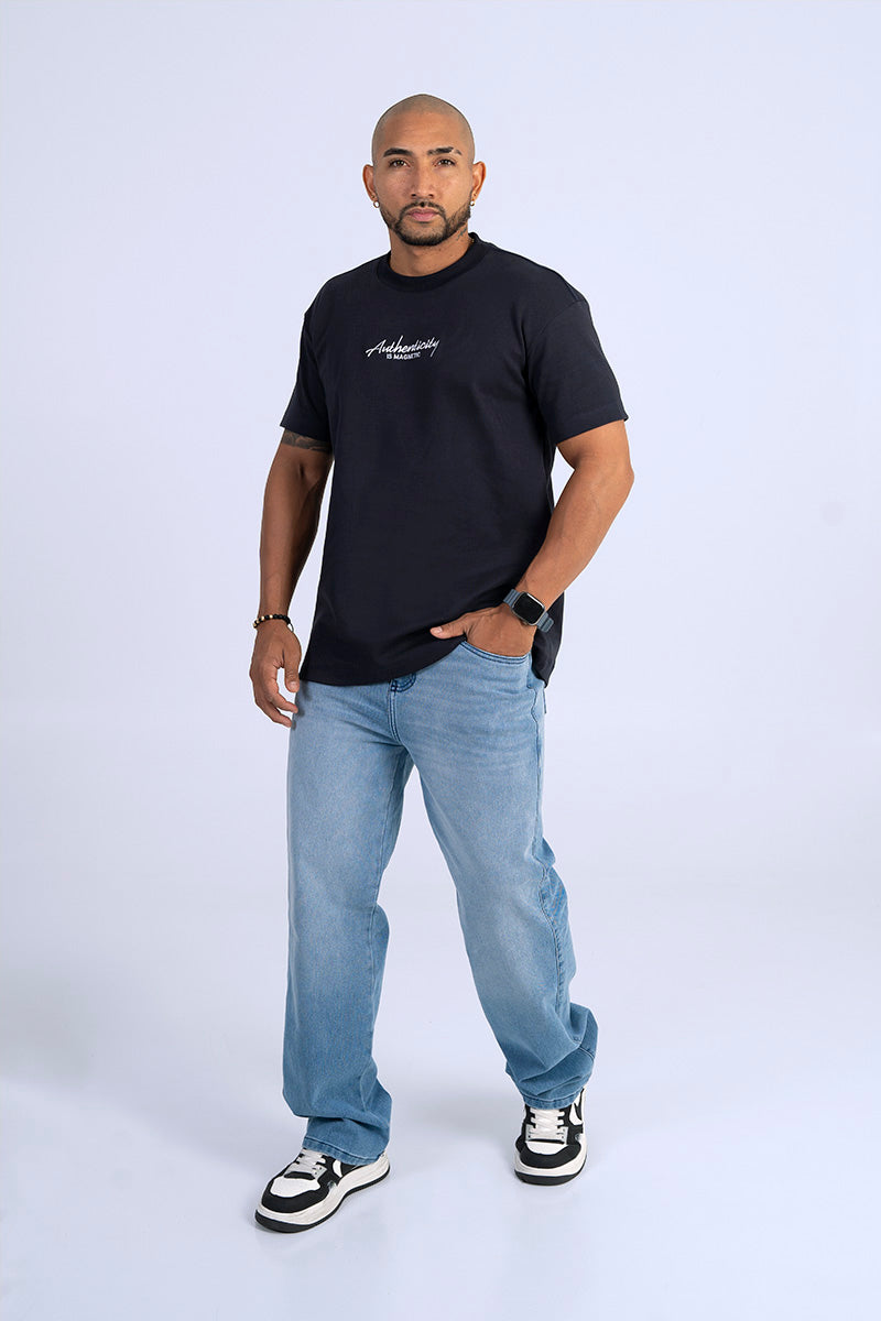 Esta camiseta estilo relaxed ofrece la silueta ideal para quienes buscan un término medio entre la fit regular y oversize. Confeccionada 100% en algodón de alta calidad, garantiza comodidad y durabilidad. Su bordado exclusivo aporta un toque único y sofisticado, haciendo de esta prenda una pieza distintiva y versátil, perfecta para complementar cualquier estilo con elegancia y confort.