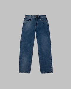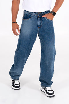 Pantalón en índigo rígido y suave al contacto con la piel, en estilo relaxed fit / silueta amplia.