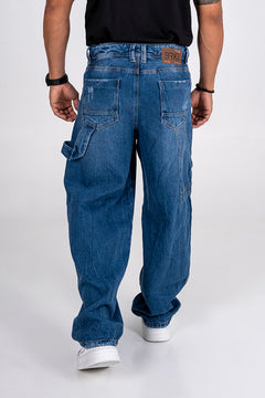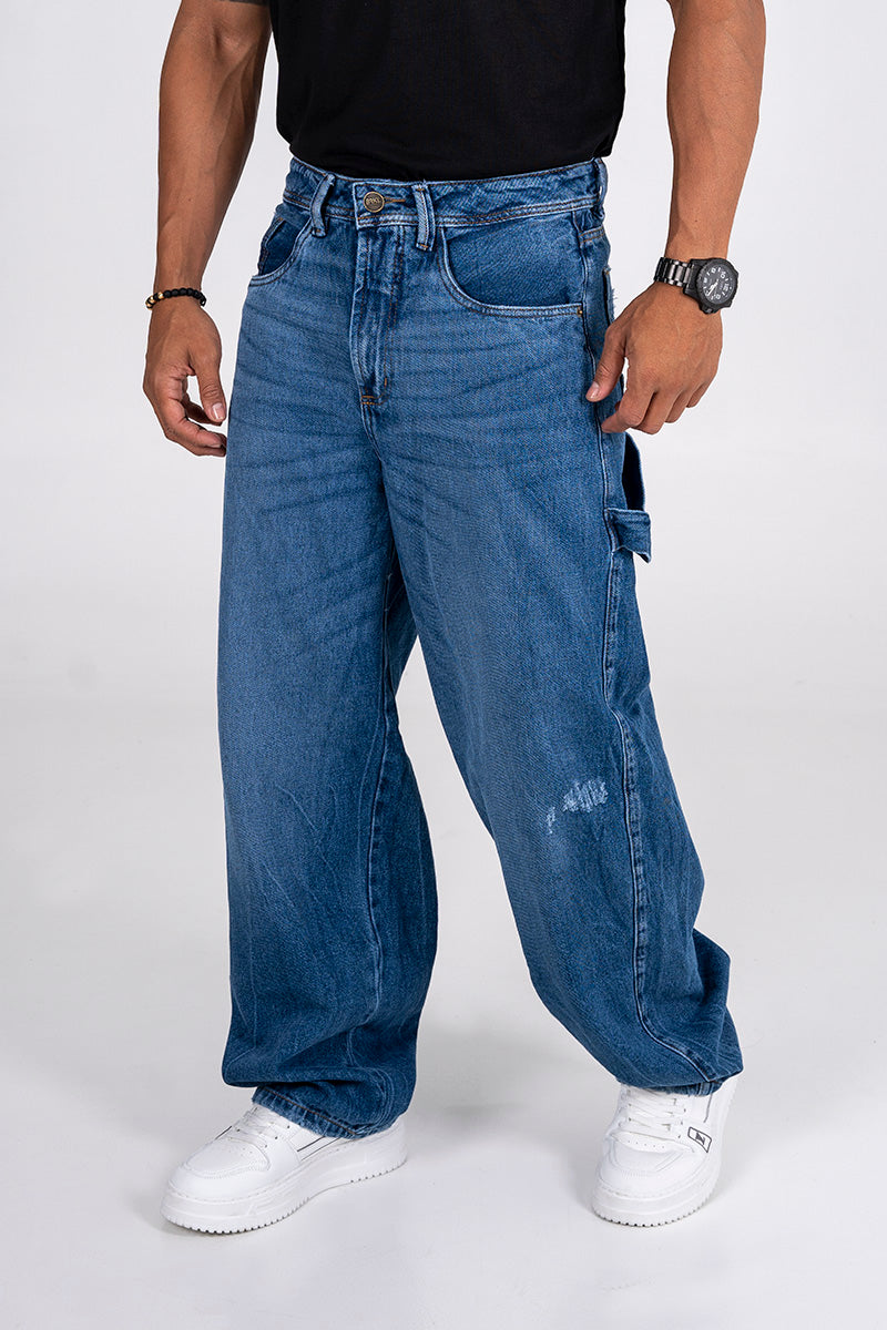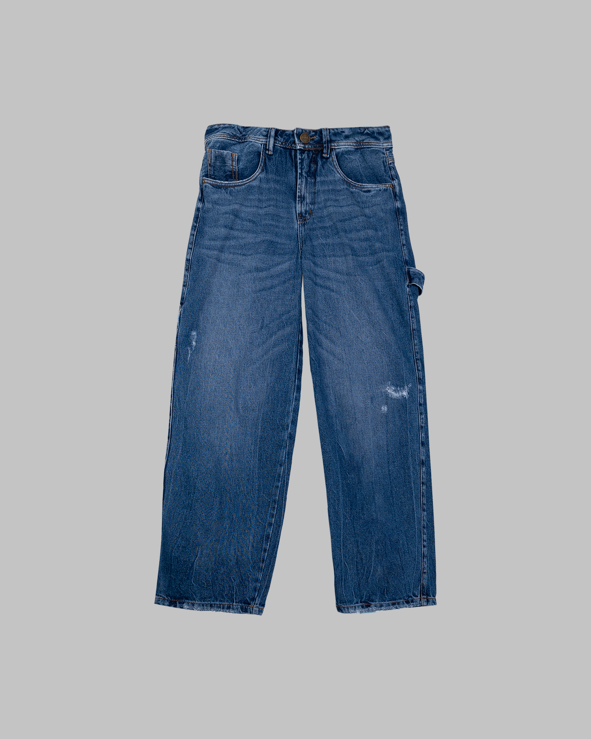 Pantalón en índigo rígido y suave al contacto con la piel, en estilo relaxed fit / silueta amplia.