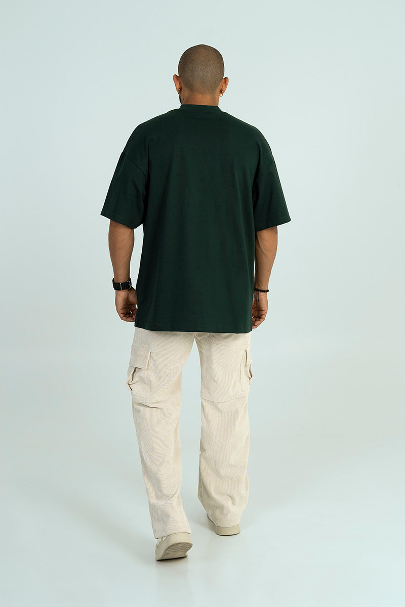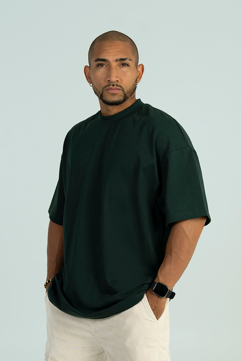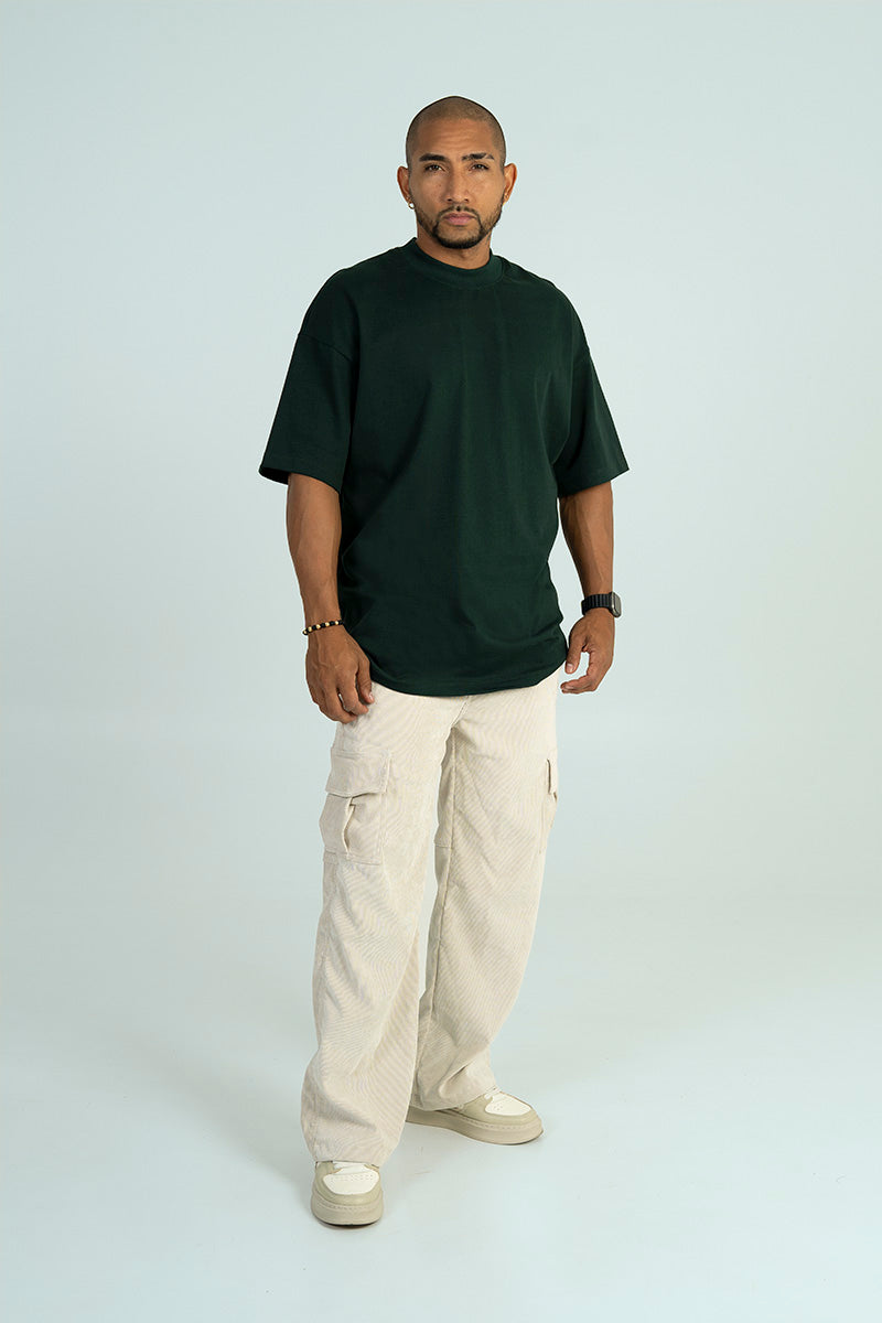Este outfit MATCH #10 combina una camiseta oversize básica verde bosque con un pantalón en tela piel de gato, una tela acanalada que destaca por su suavidad y comodidad. Perfecto para quienes buscan un look casual con un toque sofisticado, este conjunto ofrece comodidad y estilo sin esfuerzo.