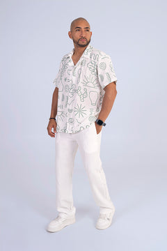 El conjunto perfecto para cualquier ocasión. Camisa de botones en la parte delantera combinada con pantalón blanco, ambas prendas confeccionadas en telas ligeras y transpirables que garantizan máxima comodidad. Ideal para climas cálidos, escapadas a la playa o eventos especiales donde necesites verte impecable sin sacrificar la frescura. Un match versátil que se adapta a tu estilo de vida.