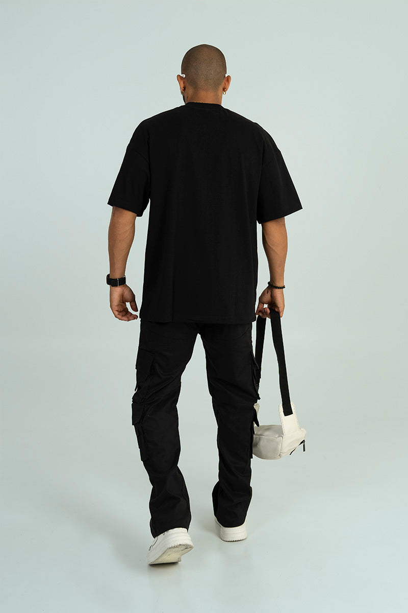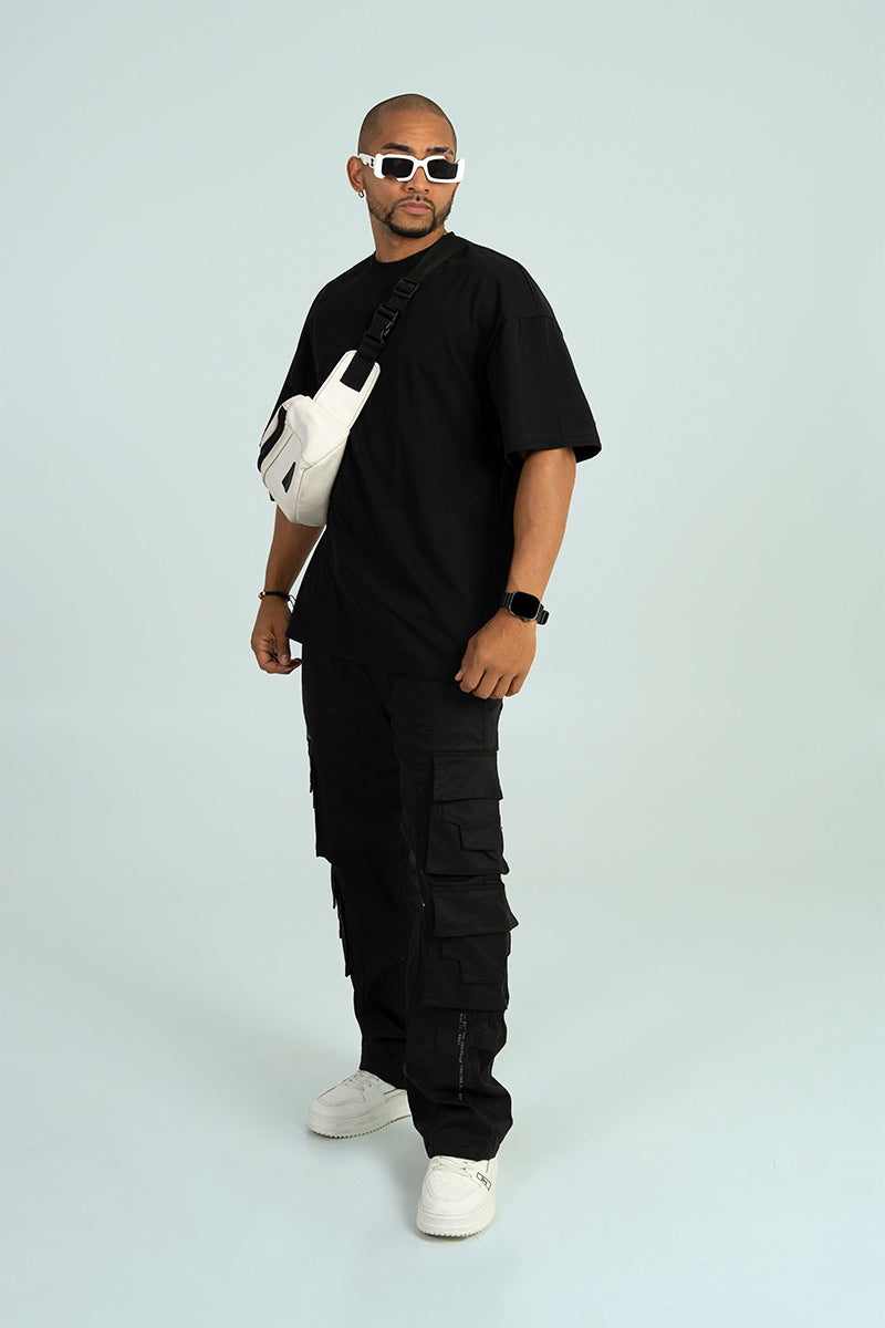 El outfit MATCH #9 es perfecto para quienes prefieren un estilo clásico y son amantes del color negro. Incluye una camiseta oversize básica negra y un jogger con bota lisa en el mismo tono, combinando comodidad y versatilidad para el día a día.